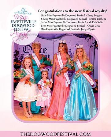 Winners in the Miss and Teen Miss categories each win a scholarship along with their titles, and winners in all other categories will have an opportunity to represent the Fayetteville Dogwood Festival at various events throughout the year.