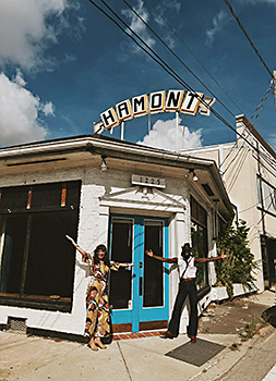(Photo: Michelle Clark and Jamil Rashad stand at 1225 Fort Bragg Rd., the location of Westdale Vintage. Since taking over the retail space, the pair have painted the doors yellow and transformed the space into a unique vintage shopping experience for Fayetteville. Photo courtesy of Westdale Vintage Facebook Page)